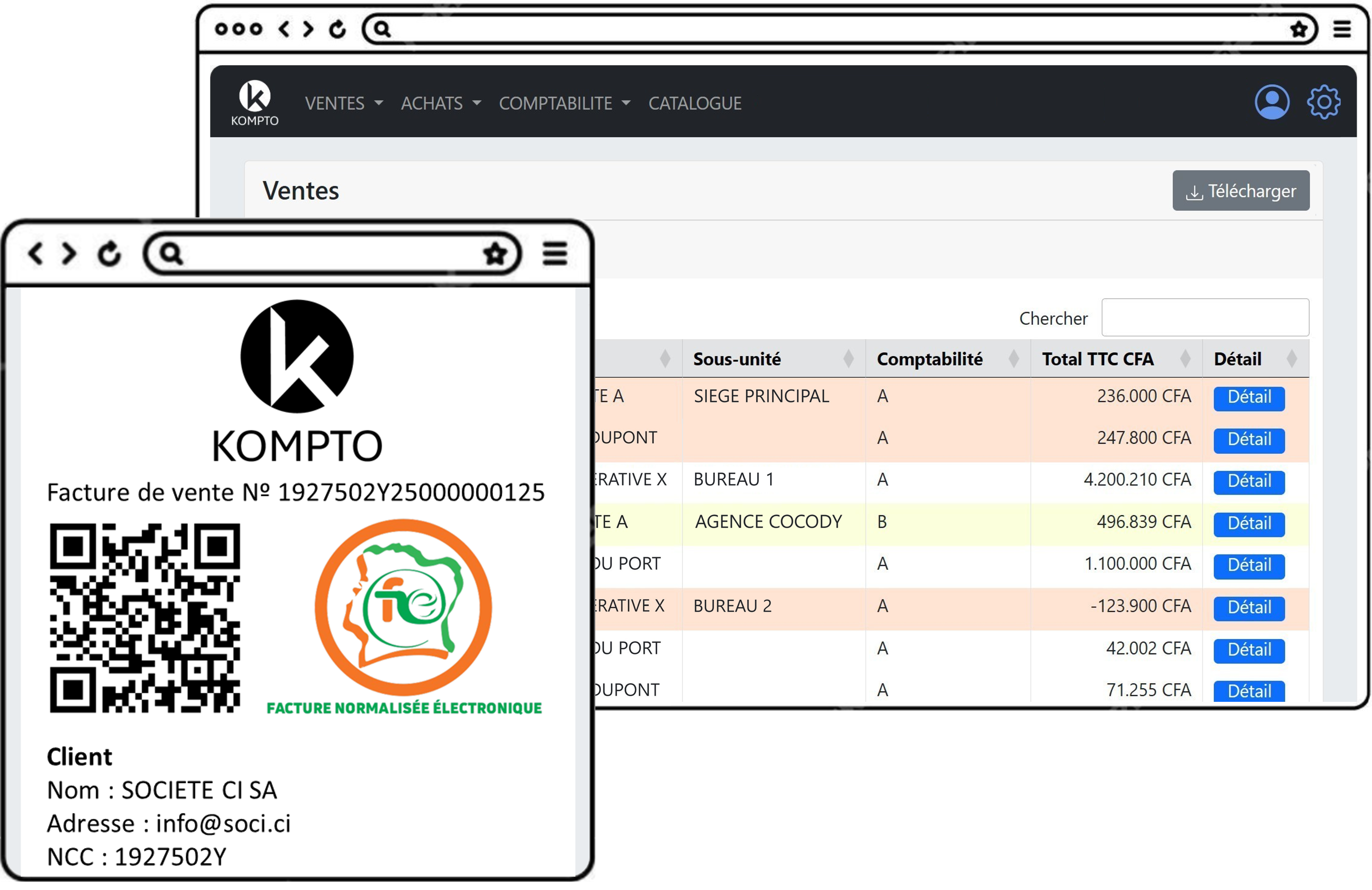 KOMPTO est la solution de facturation électronique (FNE) et de gestion intégrée pour les entreprises et les professionnels en Côte d'Ivoire.